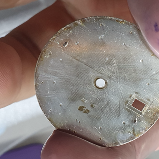블루핸즈와 인덱스가 인상적입니다. 초침 부분에 녹같은 것들이 보입니다.